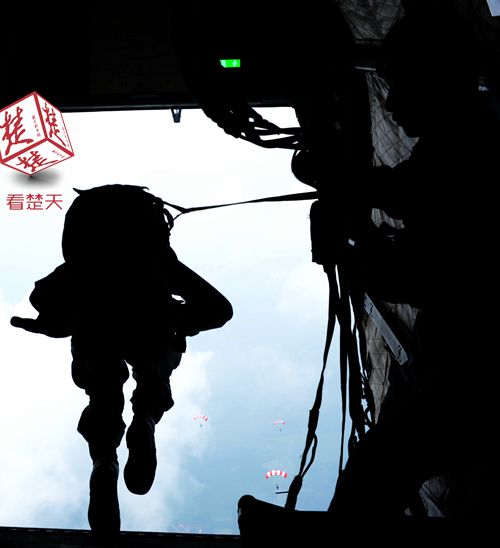圖為中國參賽隊員躍出機艙。方超攝