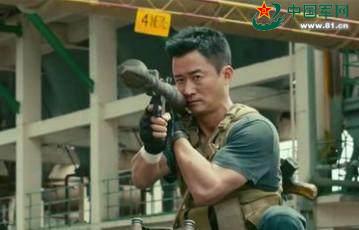 圖中吳京手持的火箭筒是我國69式火箭筒,其口徑為40毫米,配用85毫米超口徑空心裝藥破甲彈,在軍中大家都喜歡叫他“四零火”。“四零火”的老大哥是享譽世界的蘇制RPG-7型火箭筒,該裝備國產化以后迅速列裝部隊,在某次邊境作戰大放異彩。69式火箭筒重量輕,價格低,操作簡便,是步兵近程破甲攻堅的利器,甚至可以充當近程支援炮火使用。其在戰場中神出鬼沒,成為了坦克揮之不去的夢魘。盡管中國在80年代中期已經停止生產該裝備,但它目前仍然活躍在非洲和中東戰場上。