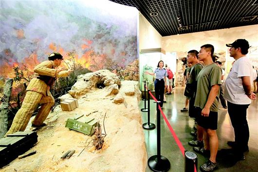 圖為:大學生在空降兵軍軍史館聆聽英雄黃繼光的故事。(視界網(wǎng) 蔣龍 劉治鑫 攝)