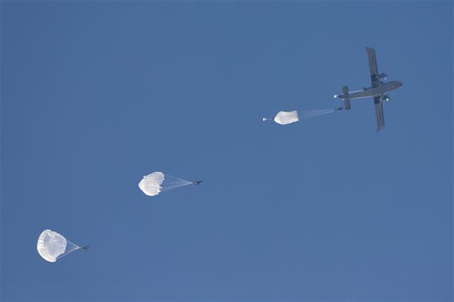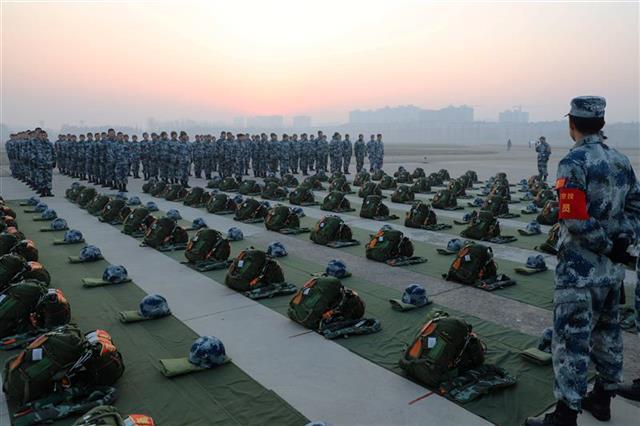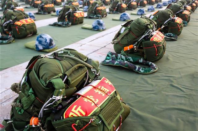 清晨6點,鄂北某軍用機場氣溫降至零下2度,新兵們準時到達機場,在投放員帶領下,有序地鋪設墊布、整理傘具。休息區內,投放員通報氣象資料,為跳傘員分析空中操縱要領。