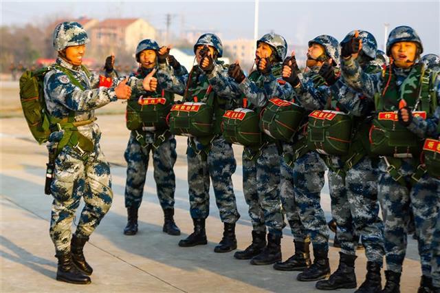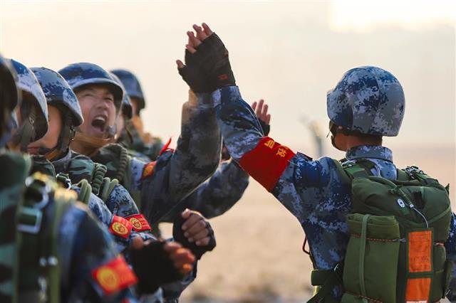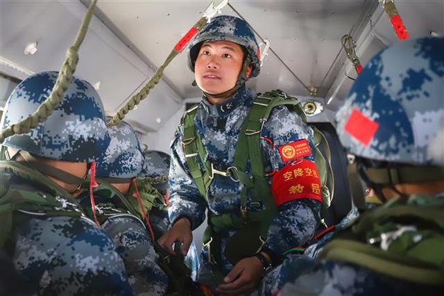 “同志們,我先跳,在著陸場等著給你們慶功!”開跳前,空降兵某訓練基地副政委張涌潮為新兵動員鼓勁。據了解,該部今年參加跳傘的新兵,60%以上都是“00后”,出生于“千禧年”,心理素質比較脆弱,為了幫助他們渡過跳傘“心理關”,這個部隊先后進行高空模擬訓練、VR虛擬跳傘、心理行為訓練等,同時每個架次都安排干部骨干帶頭跳。