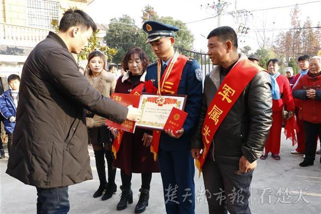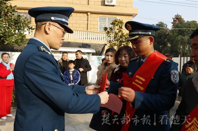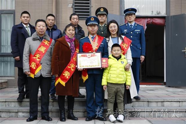楚天都市報(bào)訊(記者陳倩 通訊員王寶廷 李偉)“歡迎黃繼光英雄部隊(duì)領(lǐng)導(dǎo)和功臣來到我們社區(qū)!”12月13日,空降兵某部“送喜報(bào)進(jìn)家門”小分隊(duì)李偉少校一行人來到武漢江漢區(qū)漢興街常遠(yuǎn)里社區(qū),車子進(jìn)入小區(qū)剛一停穩(wěn),早已等候多時(shí)的漢興街常遠(yuǎn)里黨委書記黃世橋和武裝部鐘飛干事就上前熱情迎接。當(dāng)天,榮立三等功的營長姜志偉也隨送喜報(bào)小分隊(duì)一同回到家中,接受武裝部、社區(qū)和所在單位一同送來的軍功章和立功喜報(bào)。街坊鄰舍聽說姜志偉載譽(yù)歸來,也無不為社區(qū)出了一名優(yōu)秀軍人感到無比自豪,紛紛前來參加慶功會(huì),同軍屬一道共同見證這一榮耀時(shí)刻。