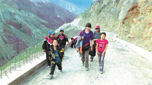 兩個多小時的相處,卓嘎已經(jīng)依依不舍,執(zhí)意要送盧云飛回鎮(zhèn)上。蜿蜒崎嶇的5公里山路,是姐弟倆去鎮(zhèn)上讀書的必經(jīng)之路。