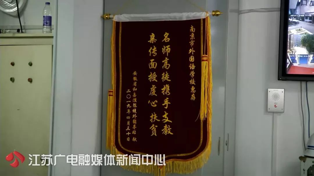 老人告訴保安,自己是安徽一家留守兒童學校的創始人,想要把錦旗送給幾位支教的南外學生。