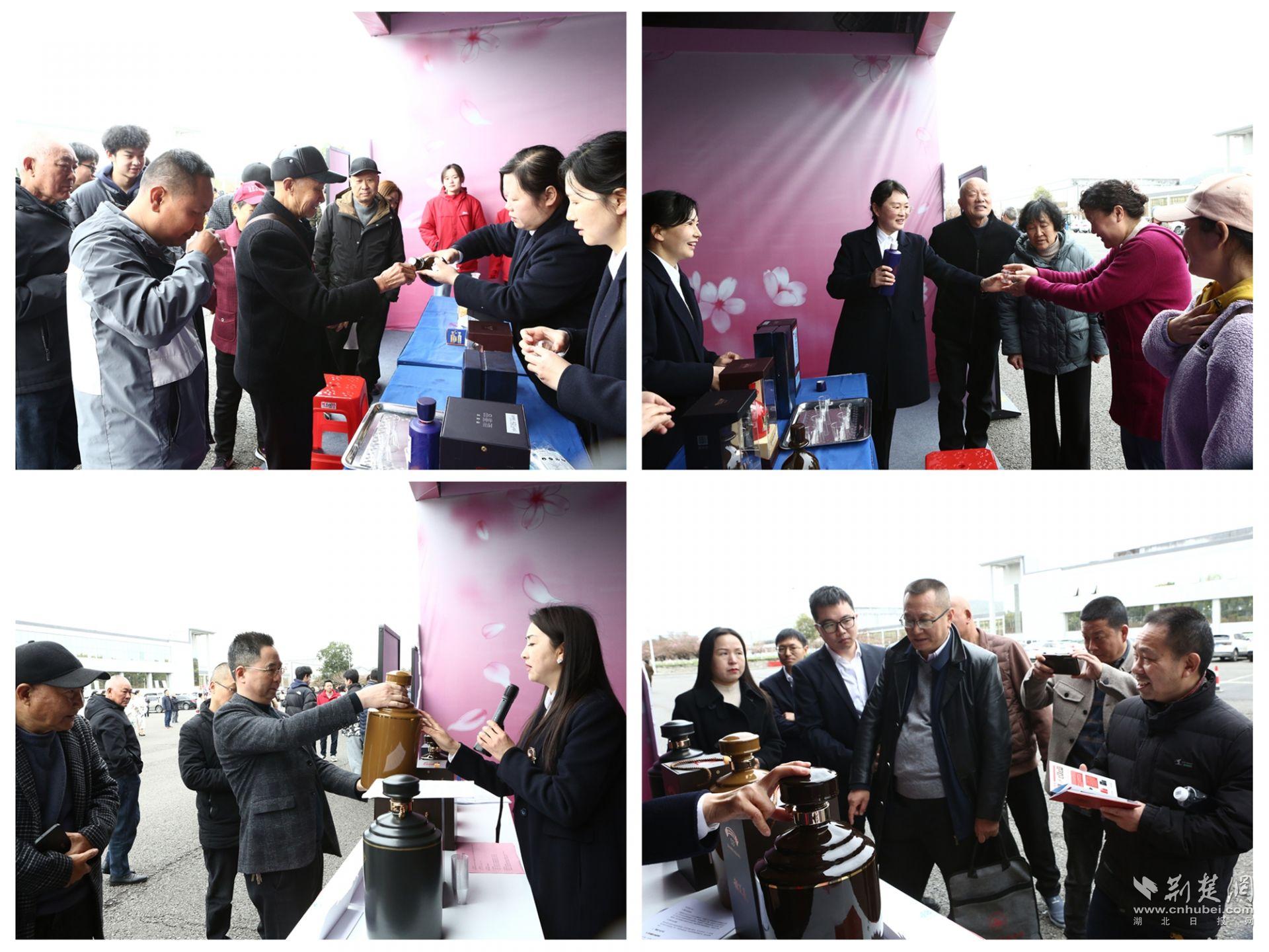沿著櫻花大道前行,來(lái)到稻花香美酒品鑒區(qū)、展售區(qū)、抽獎(jiǎng)區(qū)。工作人員正熱情為游客們介紹稻花香釀酒工藝、產(chǎn)品特色、品牌文化等情況。