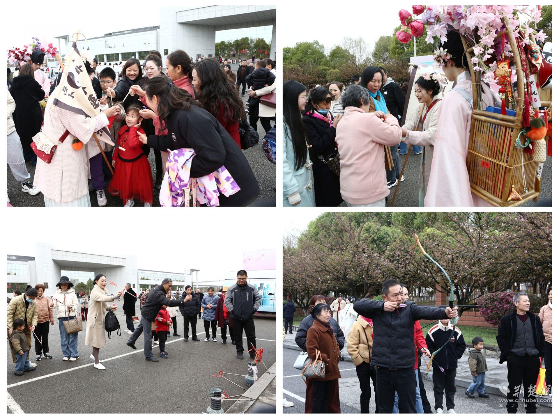 古風(fēng)NPC場(chǎng)景備受歡迎,貨郎挑著擔(dān)子穿梭在櫻花園中,售賣稻花香文創(chuàng)產(chǎn)品;占卜、射箭、投壺等國(guó)潮游戲,引得游客紛紛體驗(yàn)古人踏春賞花的樂(lè)趣,積極參與互動(dòng)集章贏好禮活動(dòng)。
