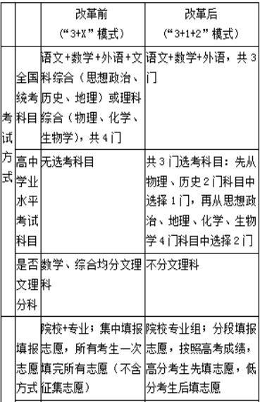 按照《方案》,高考綜合改革將于2021年起實施,不再分文、理科,考試科目設置變為“3+1+2”,招生錄取由根據統一高考成績錄取向“兩依據、一參考”錄取模式轉變,由單一高考錄取向“分類考試、綜合評價、多元錄取”轉變。