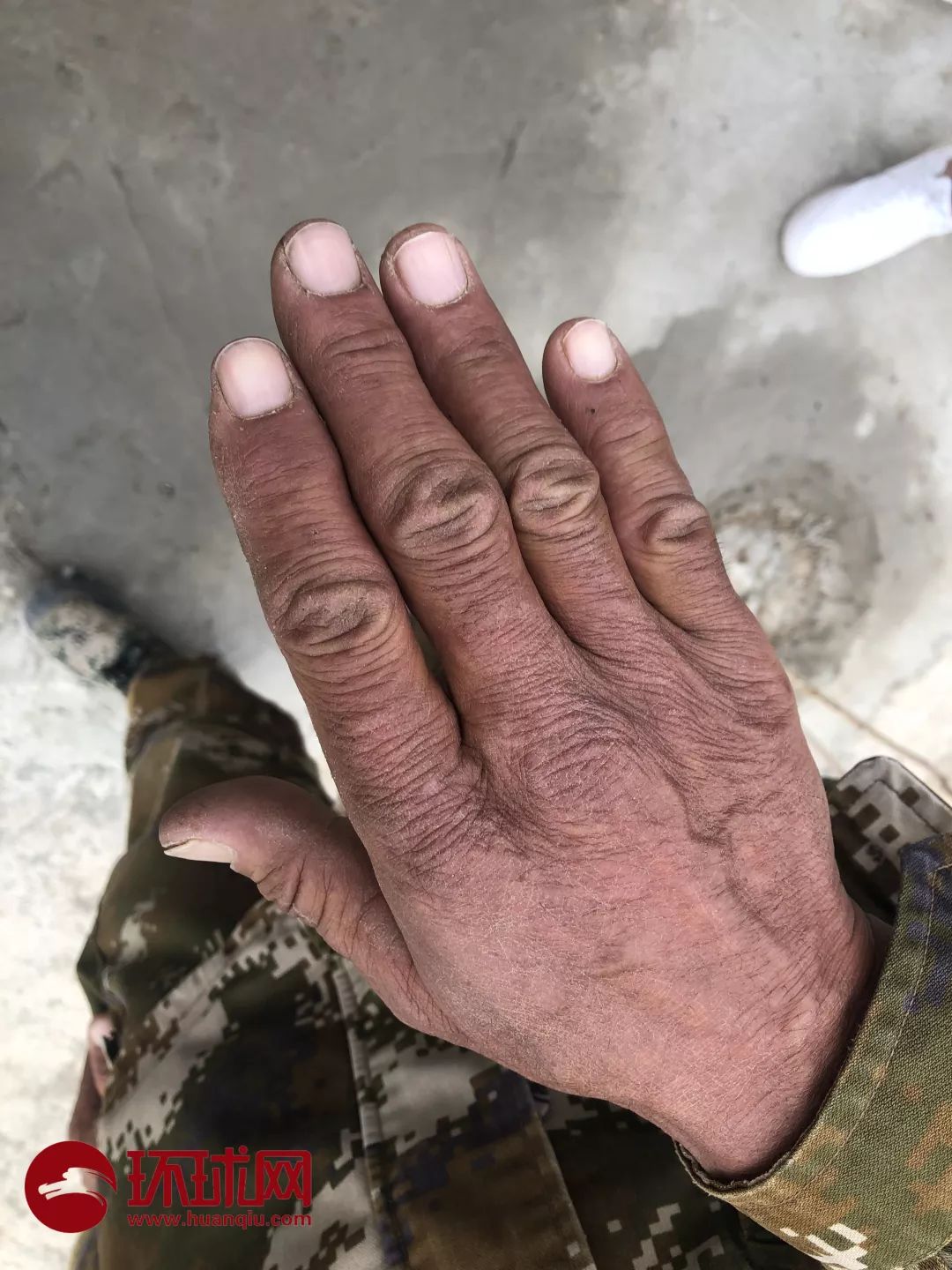 烏什縣亞曼蘇柯爾克孜民族鄉巡邊員托乎提·提來西的手被高海拔陽光曬成紫紅色。范凌志攝