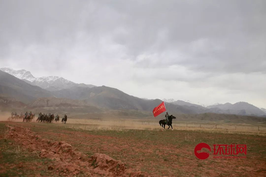 新疆阿克蘇地區溫宿縣騎兵二連正在草原上策馬奔騰。范凌志攝