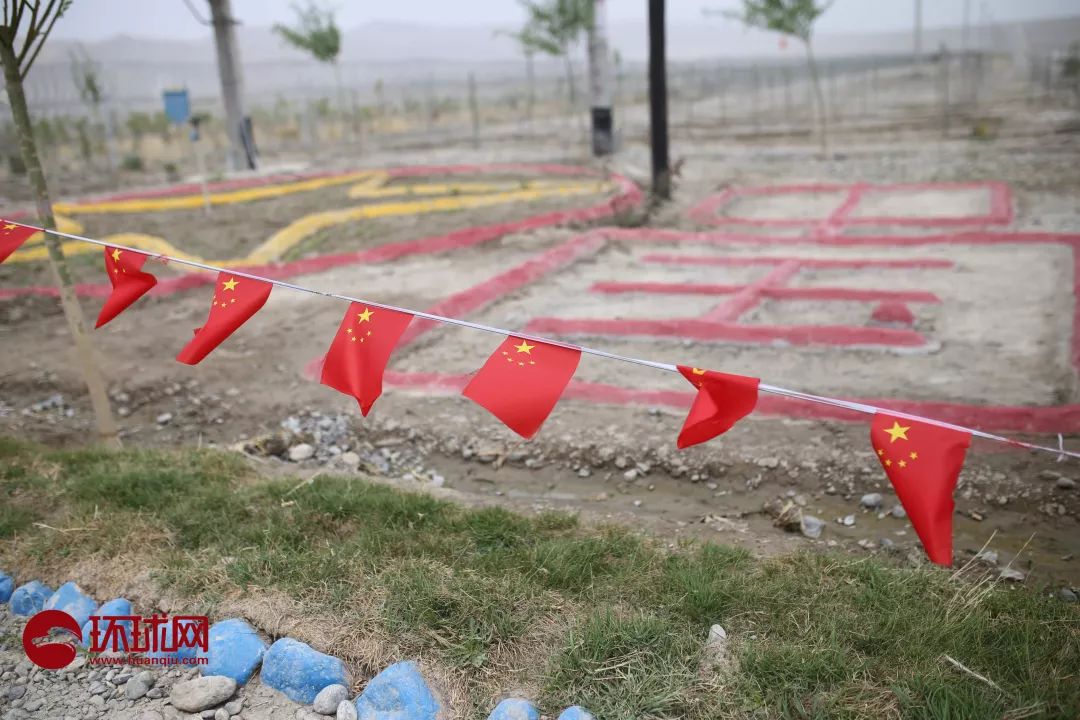 烏什縣英阿瓦提鄉庫奇村撒熱木警務站護邊員們在工作間隙,在警務站大門口兩邊的空地上用500塊彩色石頭擺出了“中國”兩個字和五角星。范凌志攝