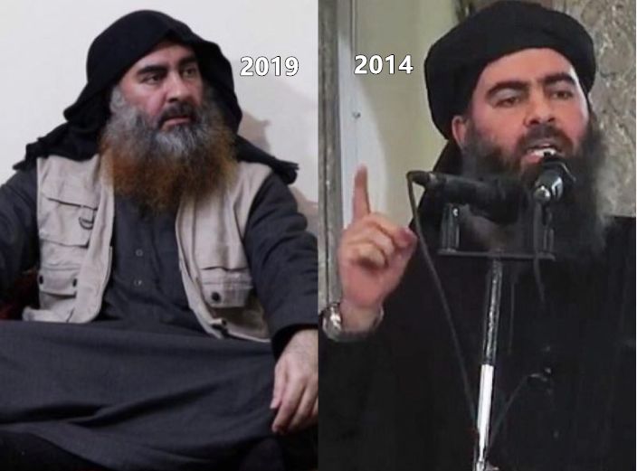2019年的巴格達迪(左) 2014年的巴格達迪(右)