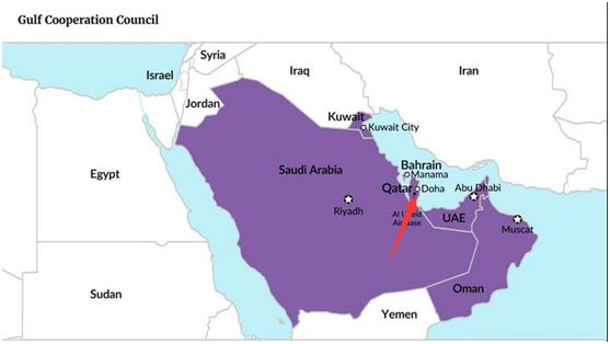 烏代德空軍基地與伊朗為位置示意/資料圖