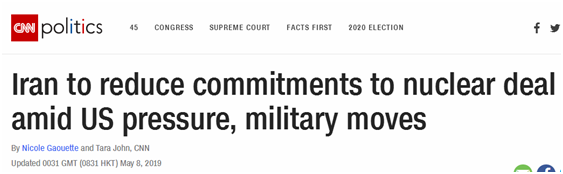 美國的經(jīng)濟制裁與軍事施壓步步緊逼,CNN7日的頭條報道稱,伊朗預計在周三(5月8日)宣布減少對2015年簽署的國際核協(xié)議的承諾。2018年5月8日,美國總統(tǒng)特朗普宣布退出伊朗核協(xié)議。時隔一年,伊朗方面6日表示,該國將不再履行協(xié)議中作出的部分承諾,作為對美國收緊(對伊)制裁的回應。