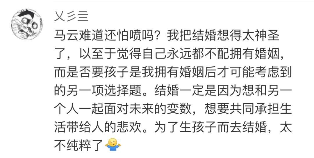 關于馬云“婚姻是為了生孩子”的言論,引起了網友的熱議。