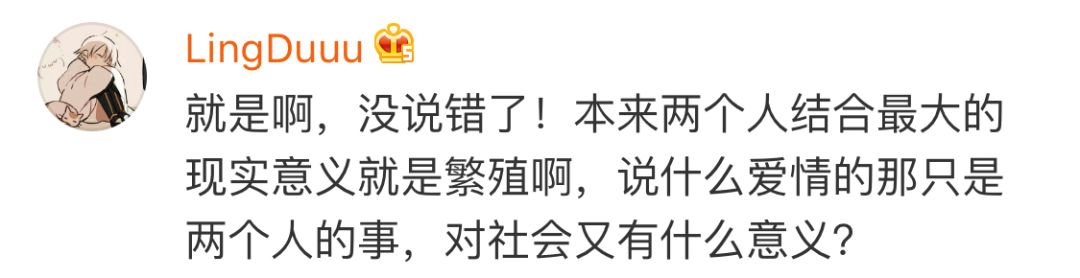”婚姻的第一個KPI,第一個指標就必須要有結果,要有產品,產品是什么?要生孩子。30年以前,全國每年有2500萬新生兒童,20年前,全中國每年是2000萬新生兒童。而去年我們國家一年只有1500萬的新生兒童。如果大家都不生孩子,到了有一天,我們這個國家一年只有500萬孩子的時候,這個社會就會變得非常可怕。