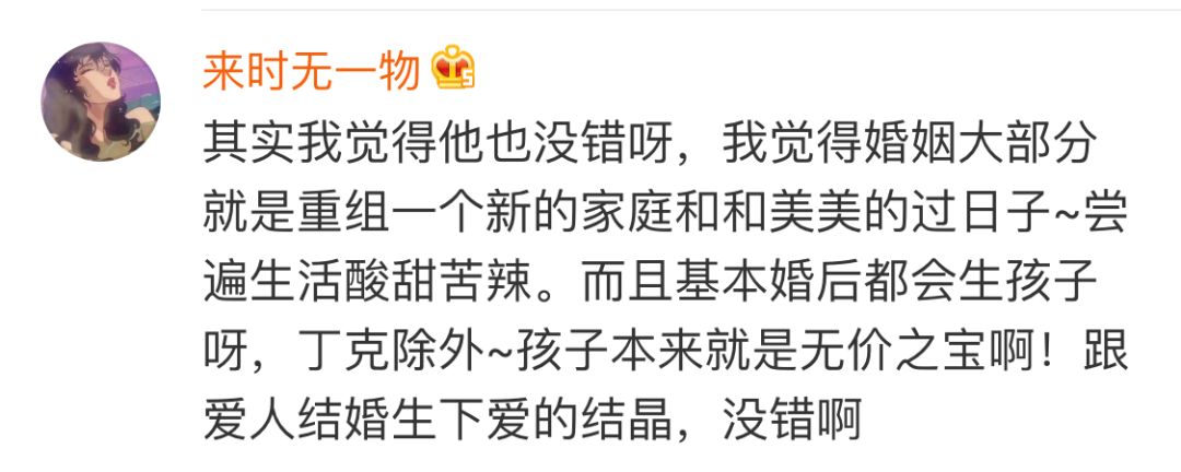 婚姻不是為了進一步積累財富,不是為了買房子,不是為了買車子,而是一起生孩子。要一起享受幸福美滿的生活,孩子是無價之寶,永遠記住,所有的東西都可能是別人的,都可能是假的,只有孩子才是真正自己的東西,多生孩子吧!“