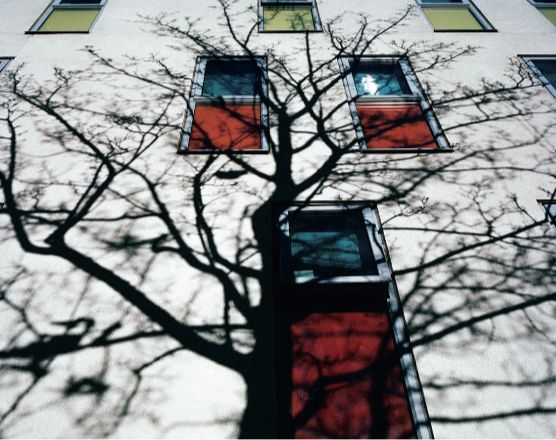 東倫敦街景。房屋潔白的墻壁上,紅黃藍(lán)色的窗子整齊分布,很有上世紀(jì)荷蘭藝術(shù)家蒙德里安的抽象風(fēng)格,斑駁的樹影打破了寧靜。