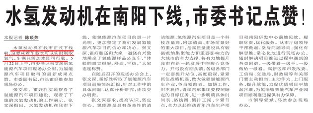 據《南陽日報》報道,“5月22日上午,南陽市委書記張文深到氫能源汽車項目現場辦公時,為氫能源汽車項目取得的最新成果點贊。市委副書記、市長霍好勝參加現場辦公。”