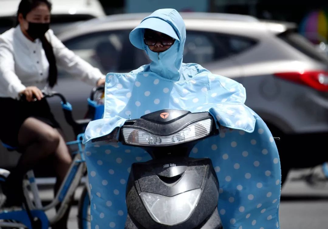 △6月2日,河南洛陽發(fā)布高溫紅色預(yù)警信號,市民“全副武裝”出行/視覺中國