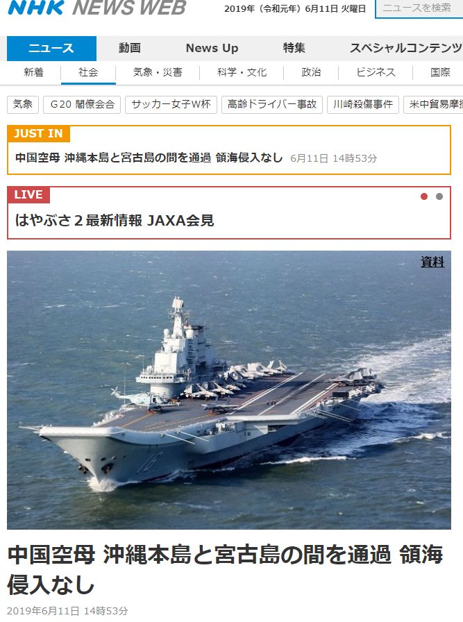 日本廣播協會(NHK)剛剛援引日本防衛省消息人士稱,中國遼寧艦11日早穿過宮古海峽,從東海進入太平洋。