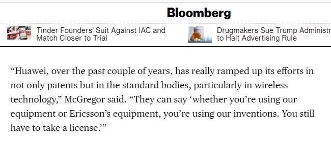 一位接受“彭博社”采訪的專家就舉例說,即便你用的是愛立信的設備,華為也可以找你要錢,因為你用的發明是人家的。這位專家還表示,這也充分說明5G的未來是需要美國和中國合作的。