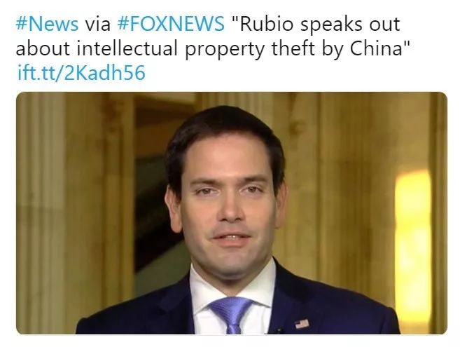 ▲圖為盧比奧此前多次污蔑中國“盜竊”美國的“知識產權”