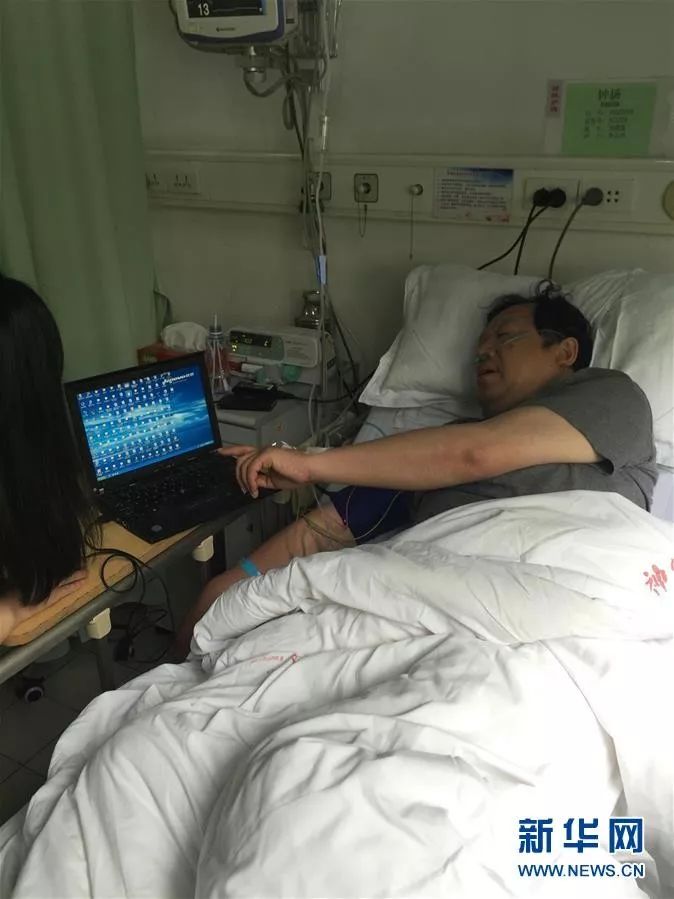 鐘揚教授在病房與同事交接工作(2015年資料照片)。新華社發(復旦大學供圖)