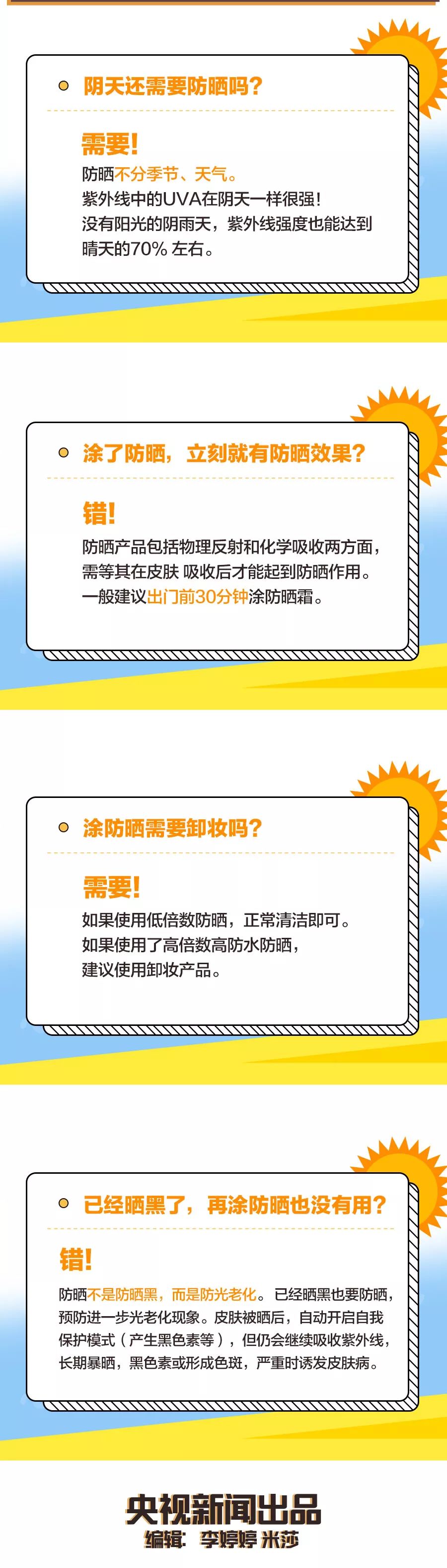 烈日當頭,很多人都進入了防曬一級備戰狀態,各種花式防曬裝備層出不窮。都說防曬做不對,看起來老十歲!如何正確防曬?怎樣做才不會被曬黑?一圖帶你打開夏日最全防曬指南↓