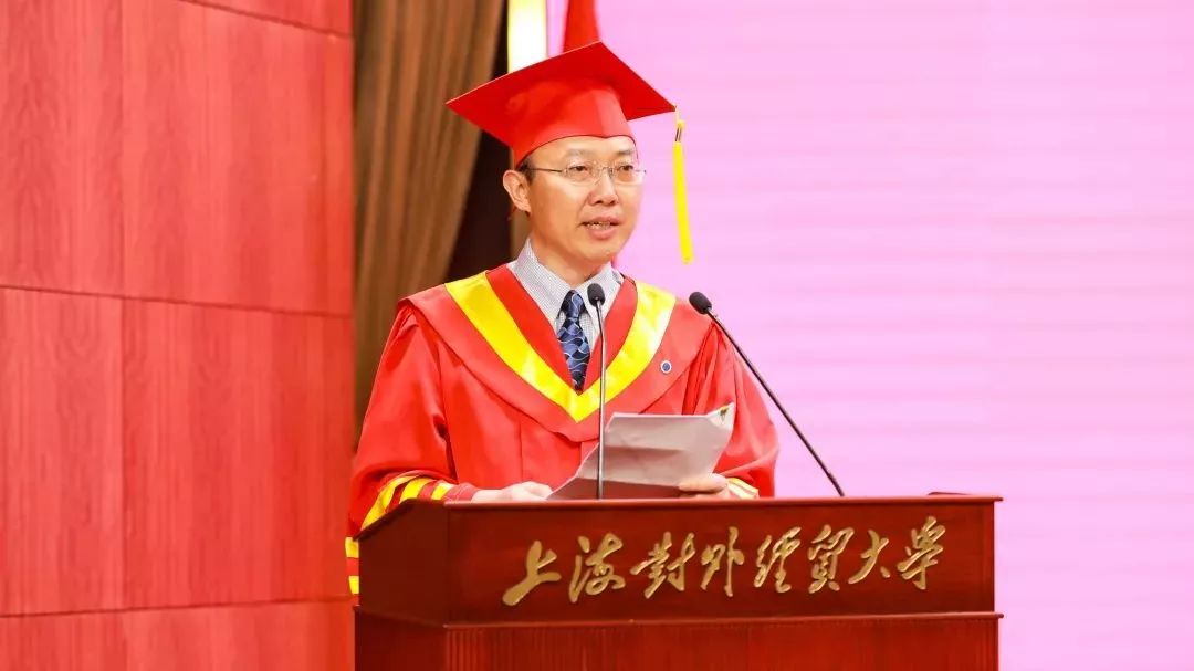 上海對外經貿大學2019屆本科生畢業典禮上, 校長汪榮明作了《亮出青春底色 ,實現復利人生》的講話,寄語2019屆畢業生。