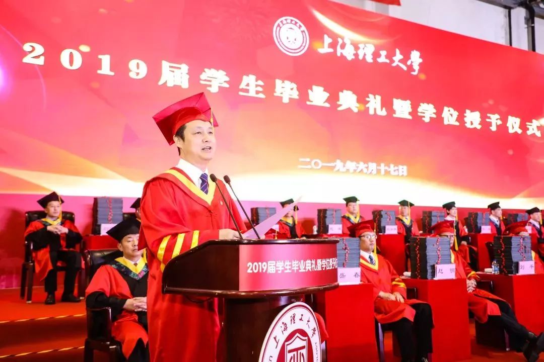 大家上午好!今天我們在此隆重舉行上海理工大學2019屆本科生畢業典禮,首先,我要向圓滿完成學業的全體本科畢業生致以最熱烈的祝賀!向為同學們成長成才付出辛勤努力的各位老師和家長,致以最崇高的敬意!