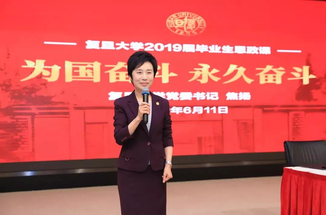 復旦大學黨委書記焦揚為2019屆畢業生上畢業前的最后一堂思政課,焦揚送給畢業生們沉甸甸的八個字:為國奮斗,永久奮斗!