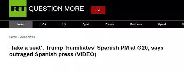 RT還說,與此同時,西班牙熱門網絡媒體“愛國者日記”則毫不留情地描述了特朗普對桑切斯的“羞辱”。“愛國者日記”還回顧了特朗普和桑切斯在去年7月的北約峰會上尷尬而被迫的相遇,兩人幾乎沒有眼神交流,特朗普只是在尷尬地長時間停頓之后才回答了西班牙領導人的問題。