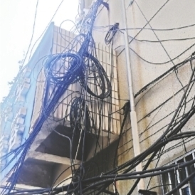 長江日報訊(記者孫笑天)網線、電線、電視線,亂麻一樣架設在居民家陽臺外,看著都嚇人。近日,武漢市漢陽區高路小區業主張女士憂心忡忡,她幾年未在此居住,最近搬回去卻發現,各式各樣的纜線在她家陽臺下織起“蜘蛛網”,還有幾根纜線直接從陽臺地面橫穿過去,住在家中心難安。