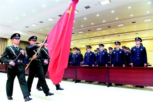 圖為換裝儀式迎軍旗。 (視界網(wǎng) 何武濤 徐晨 攝)