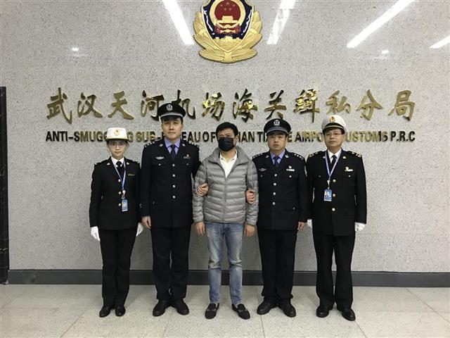 2019年1月11日19點30分,南航CZ3646班機準點在武漢天河機場降落,一隊裝備齊整的海關緝私警察表情肅穆、嚴陣以待,將竄逃到菲律賓的走私手機案犯罪嫌疑人洪某押解回國。在閃爍的警燈下,機艙門打開,洪某被緝私警察押出艙門,帶上警車。