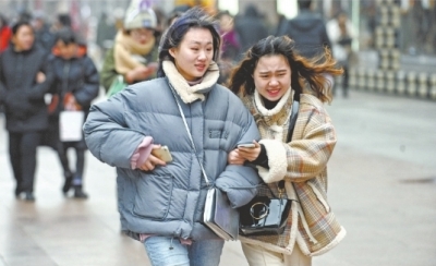 1月15日,武漢大風降溫,街頭市民包裹嚴實抵御風寒記者苗劍 攝