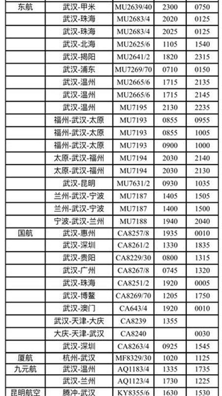 加上春運加班的4000班后,武漢往返北京、上海、廣州、深圳、海口、三亞、昆明等重點春運客流集中地的航班平均每天分別可達38班、43班,33班、29班、33班、27班、23班,將為您提供充裕的出行班次。
