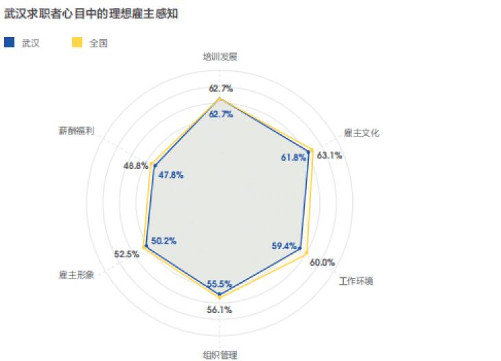 “武漢求職者最為看重的是培訓發展,其次是雇主文化和工作環境。相比于全國總體,武漢職場群體更加看重培訓發展。”智聯招聘集團市場部相關負責人告訴長江日報記者,越來越多的 95 后進入職場,他們生長在物質條件較為豐富的年代,追求個性化、多元化、注重個人體驗。面對這樣的職場群體,企業應該注重軟實力的提升,打造包容、尊重的企業文化,吸引不同特質的人才;為人才提供學習平臺和資源,支持人才進行知識的更新,以保持和提升企業的市場競爭力。