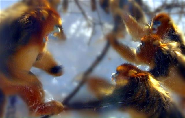 金絲猴部落之王“大膽”體態高大,毛發金紅,聰明機警。2005年,它接受了科考人員投放在雪地里的蘋果,是第一只與人類親密接觸的野生金絲猴,因而得名“大膽”。