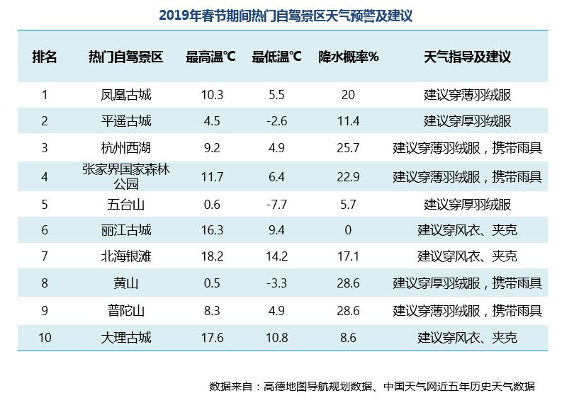 2019年春節期間,全國最熱自駕景區是湘西土家族苗族自治州的鳳凰古城,其次是晉中市平遙古城和杭州市西湖風景名勝區。