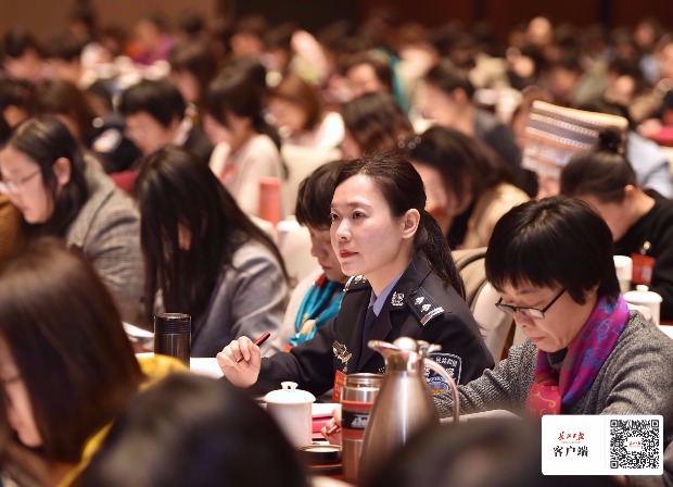 會上,各行業(yè)女性代表認(rèn)真聽取婦聯(lián)工作報(bào)告 記者郭良朔 攝