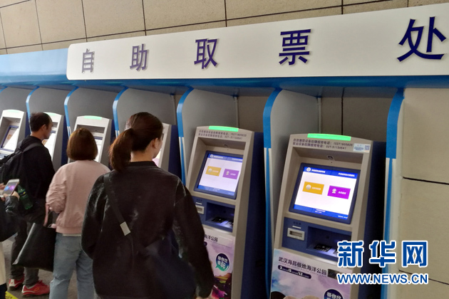 圖為:春運首日,在武昌火車站,旅客有序進行自助取票。新華網發 劉衛兵攝