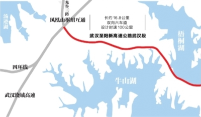 長江日報記者觀察武陽高速武漢段線路發現,高速公路起于光谷鳳凰山,與武漢繞城高速相接,并沿梧桐湖與梁子湖的子湖牛山湖狹長的中間地帶穿行,到梧桐湖畔止。