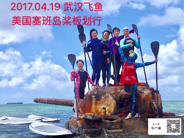 2017年去塞班島時,將漿板這種運動帶回了武漢