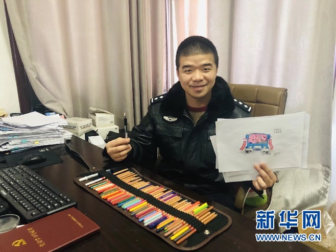 1月24日下午,新華網安徽頻道采訪了漫畫作者、安慶市公安局大南門派出所執法辦案隊警長陳達。據介紹,陳達主要負責案件偵辦與外宣工作,因為從小喜歡畫漫畫,工作當中遇到合適的題材,他就會嘗試著畫一畫。1月21日,陳達在單位值班,處理完一起警情后,他利用休息時間創作了幾幅時下走紅網絡的“佩奇”題材漫畫,后來又陸續利用出警間歇時間創作完成了8幅漫畫。