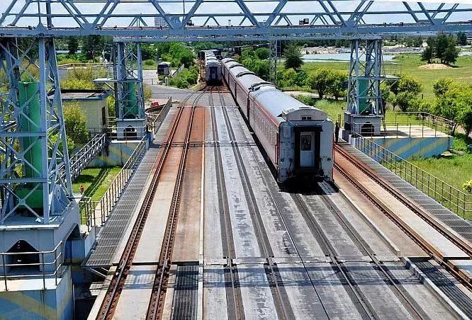 首尾相接的車廂被多股軌道