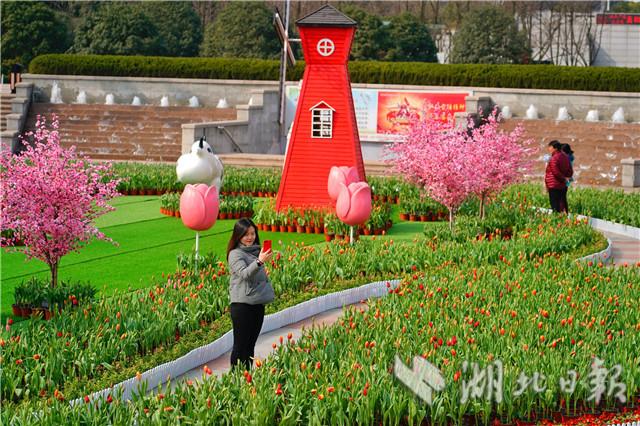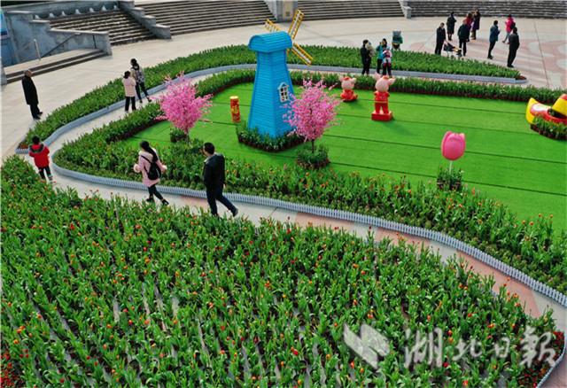 1月27日,30000株郁金香在洪山廣場中央綻放。