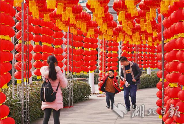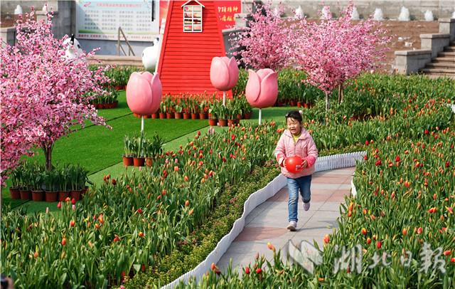 1月27日,小朋友在郁金香中奔跑。據介紹,2019年武漢洪山廣場第二屆郁金香花展于1月28日開幕,市民游客可觀賞到“金檢閱”、“道瓊斯”、“紅光”、“皇家女孩”等9個品種、30000株郁金香風采。同時廣場上15000個紅燈籠搭建成火紅的長廊,喜迎迎春。(湖北日報全媒記者倪娜 通訊員彭雪琴 謝助全攝)