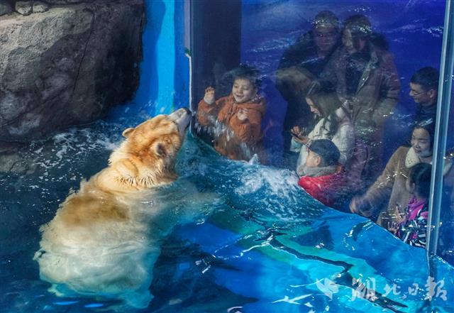 2019年1月31日,在位于武漢臨空港經開區海昌極地海洋公園內,遠道而來的“夢龍”正在適應新環境。據介紹,一只來自俄羅斯的北極熊“夢龍”近日落戶該公園,將在春節期間跟游客見面,與原有北極熊“靜靜”一起為大家送去新年祝福。北極熊“夢龍”也是園方為“靜靜”挑選的相親對象,雙方正在相處磨合中。(湖北日報全媒記者 倪娜、 通訊員 陳婷 攝)