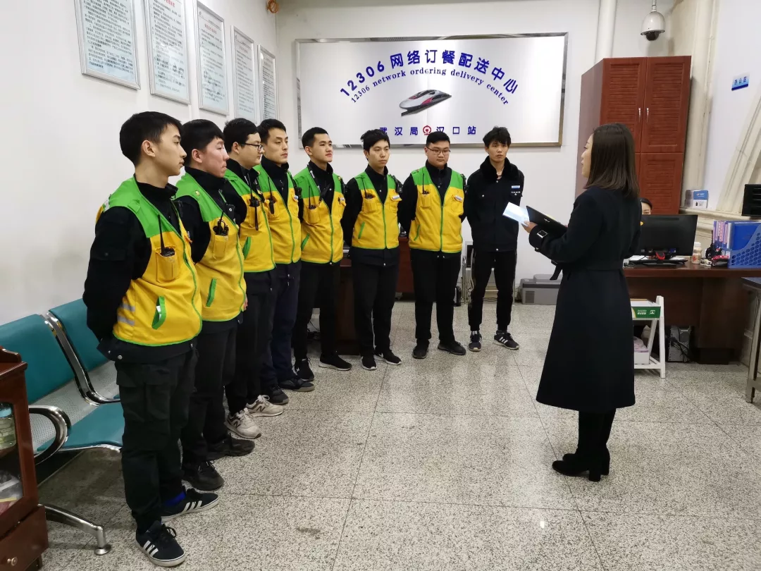 漢口站是全國38個可接受互聯網訂餐的車站之一,12306網絡訂餐配送中心設置在車站二樓候車大廳旁的東北角,這里就是葉生每天工作的地方。早上8點,配送中心會準時召開晨會,每天主管都會強調安全要點和注意事項。